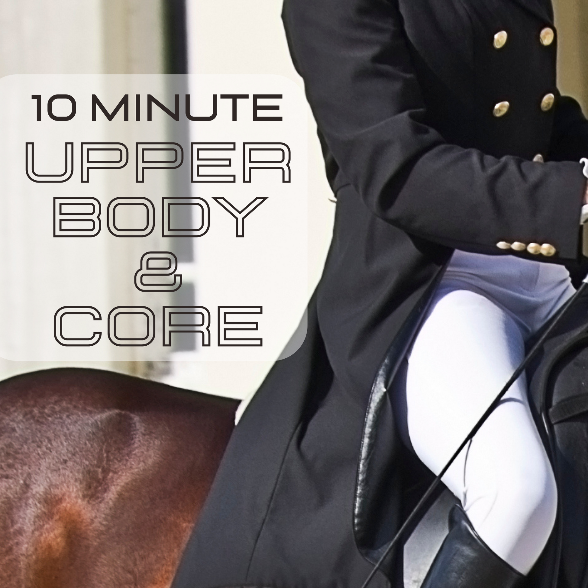 7 x 10 minute workouts, designed to give your upper body and core a fast and efficient workout. This workout is ideal for those short on time but need additional help with their upper body, shoulder and core stability in the saddle - whether on the flat or jumping. These classes are particularly helpful if you are prone to tipping your shoulders forwards while in the saddle.